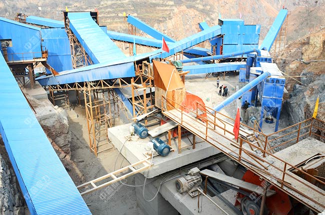 以振動(dòng)給料機(jī)、顎式破碎機(jī)、振動(dòng)篩及皮帶輸送機(jī)等設(shè)備組成的砂石骨料生產(chǎn)線,選用顎式破碎機(jī)作為破碎主機(jī),這款設(shè)備可以進(jìn)料粒度在600mm以下的大塊石料,出料粒度可在60mm-250mm之間調(diào)節(jié),顎破出來(lái)的不符合粒度的物料,需要返料回去再次破碎,這套方案需要投資100萬(wàn)元左右。