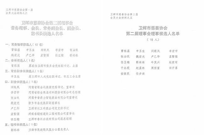 衛(wèi)輝市慈善協(xié)會(huì),是由熱心慈善事業(yè)的中公民、依法成立的企事業(yè)單位、社會(huì)團(tuán)體、民辦非企業(yè)單位及其它社會(huì)組織自愿參加的市性非營(yíng)利公益慈善社會(huì)組織。理事會(huì)理事主要由愛(ài)心企業(yè)、社會(huì)組織的代表和社會(huì)人士、慈善志愿者構(gòu)成,經(jīng)會(huì)員代表大會(huì)選舉產(chǎn)生;會(huì)長(zhǎng)、副會(huì)長(zhǎng)、秘書(shū)長(zhǎng)、常務(wù)理事由理事會(huì)選舉產(chǎn)生。
