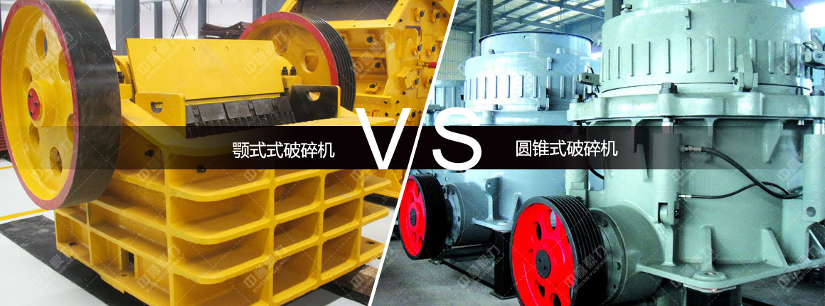 工作時,破碎機的水平軸由電機通過三角皮帶和皮帶輪來驅動,水平軸通過大、小齒輪帶動偏心套旋轉,破碎機圓錐軸在偏心套的作用下產生偏心距做旋擺運動,使得破碎壁表面時而靠近定錐表面,時而遠離定錐表面,從而使石料在破碎腔內不斷地受到擠壓、折斷和沖擊而破碎。顎破與圓錐破結構對比