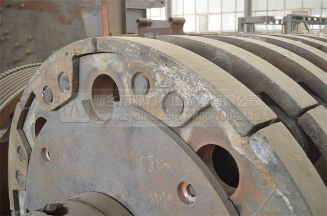3. 重型錘式破碎機(jī)轉(zhuǎn)子盤:轉(zhuǎn)子盤相對于轉(zhuǎn)子更為易磨損,因此中譽(yù)鼎力技術(shù)工人人員在轉(zhuǎn)子盤上安裝有的護(hù)圈,能夠?qū)⒛p的部分保護(hù)并更換,延長轉(zhuǎn)子的使用壽命。
